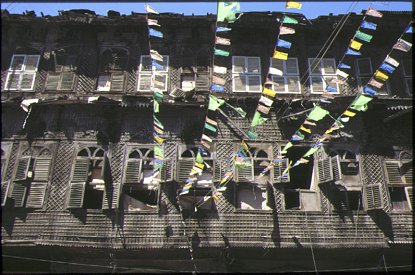 Rue Bab al-Nasr : façade en bois et guirlandeAlep - Syrie